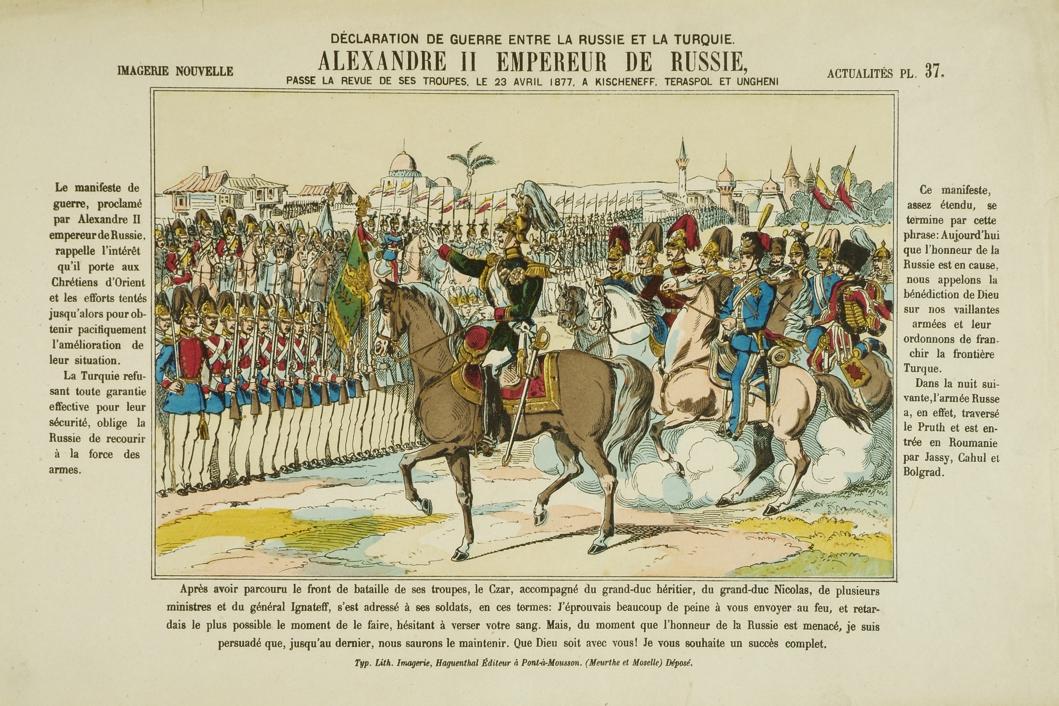 En témoigne cette image représentant la déclaration de guerre entre la Russie et la Turquie avec Alexandre II (l'empereur de Russie) en premier plan.